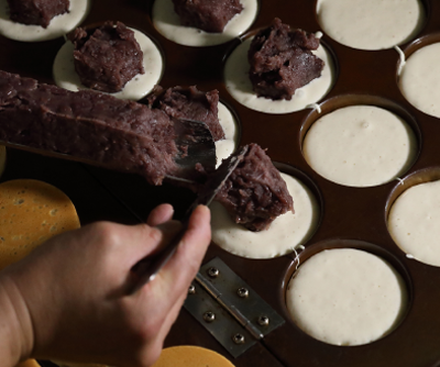 「御座候」の命とも言える中身の「あん」には、風味が豊かで、美しく、舌触りの良い北海道産小豆を使用しています。独自の選別基準で厳選された小豆・てぼう豆の風味を最大限に生かすあん作りを行っています。